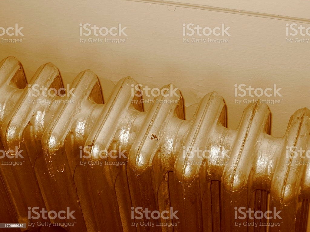 This year the radiators will try a new leak on for size, and seep water from truly anywhere and everywhere onto the floor below. You keep a bath towel at the ready beside each radiator, which can contain some of the sporadic flooding, but you still must tend to the pond beneath each of your radiators at least eight times a day.